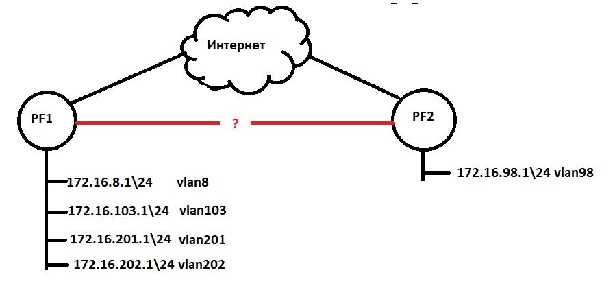 Также, если имеются клиенты из общей локальной сети, то на их конце установить роутер, чтобы он поднимал один ОБЩИЙ впн-линк к пф.