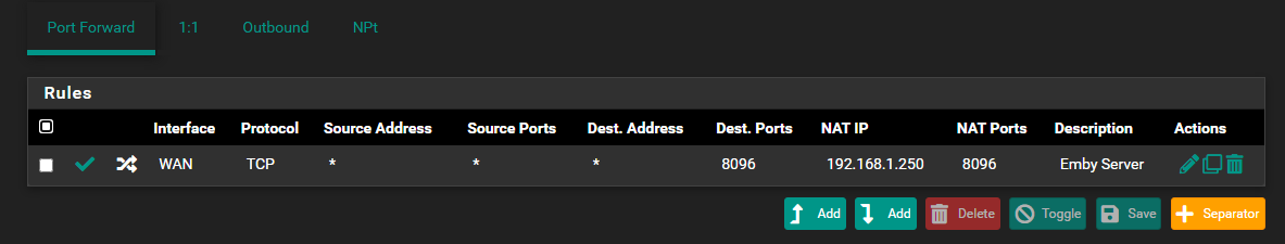 IF WAN allow WAN Net (network between pfsense and ISP router), all port, destination IP PC