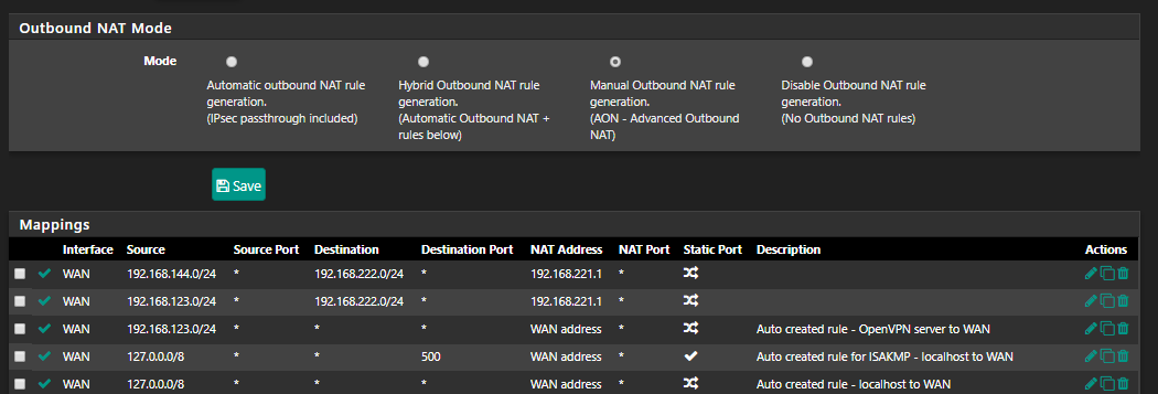 To get outbound traffic from a server using 1:1 NAT, we use Manual Outbound NAT.