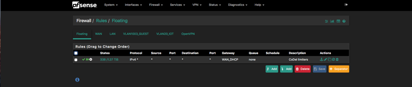 As an example, I've got a Guest VLAN for wireless access points. I have set 2 limiters - 1 for download, 1 for upload. In there I allow 10% of my entire WAN pipe and it works really well.