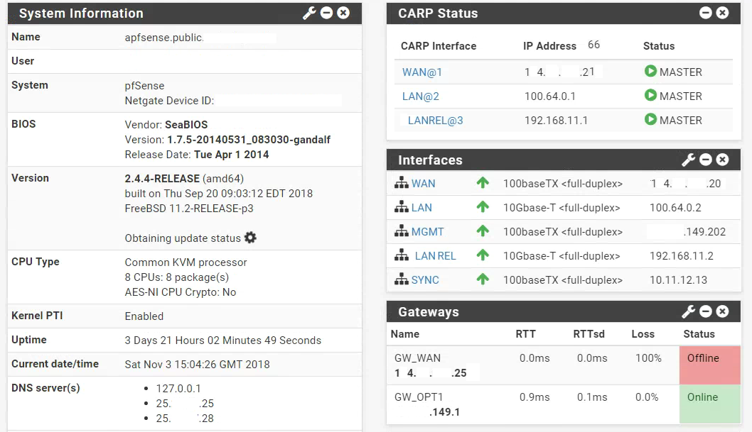 All three elements must match (WAN, wan, igb0) (MGMT, opt1, igb1.999) in the same order.