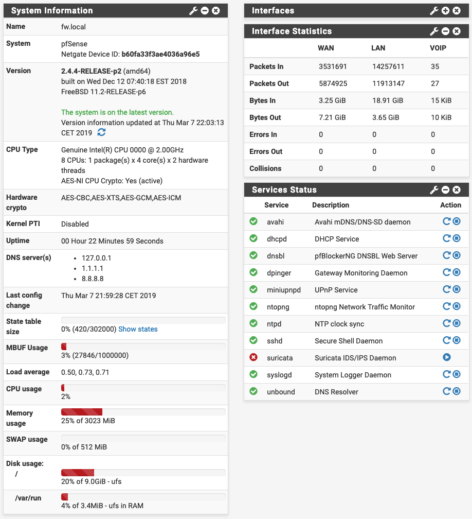 You will probably want to allocate at least two cores to pfSense, given the packages you run.