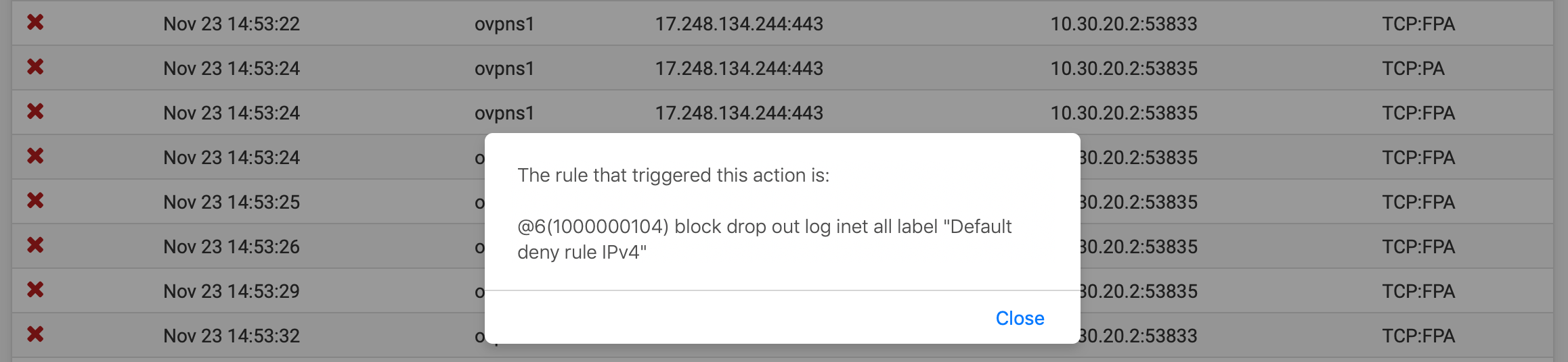 I tried adding a rule specifically allowing access to this static IP from the VPN, but of, course, the any to any rule takes precedence so this new rule does not get used.