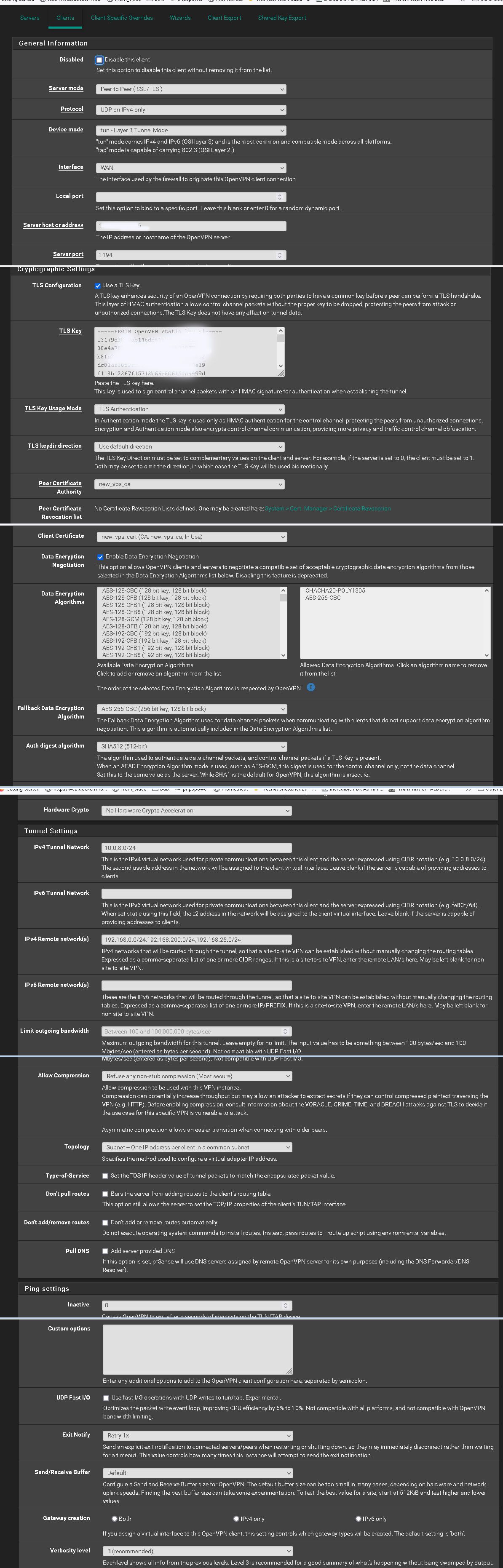 are unneccesary as they are set by pfSense itself - no need to put them in adv. options. Also using the WebUI cert as a "dummy" is nonsense too. With 2.5.2 you can simply select "none" and just supply user/pass, that's what they do anyway as the never install/import an actual client certificate (so that won't be checked by their servers and is void). Setting the MTUs and MSSFIXes is fine I guess. Always depends on your end of the line. With a bad ISP or overhead that values could also be lower.