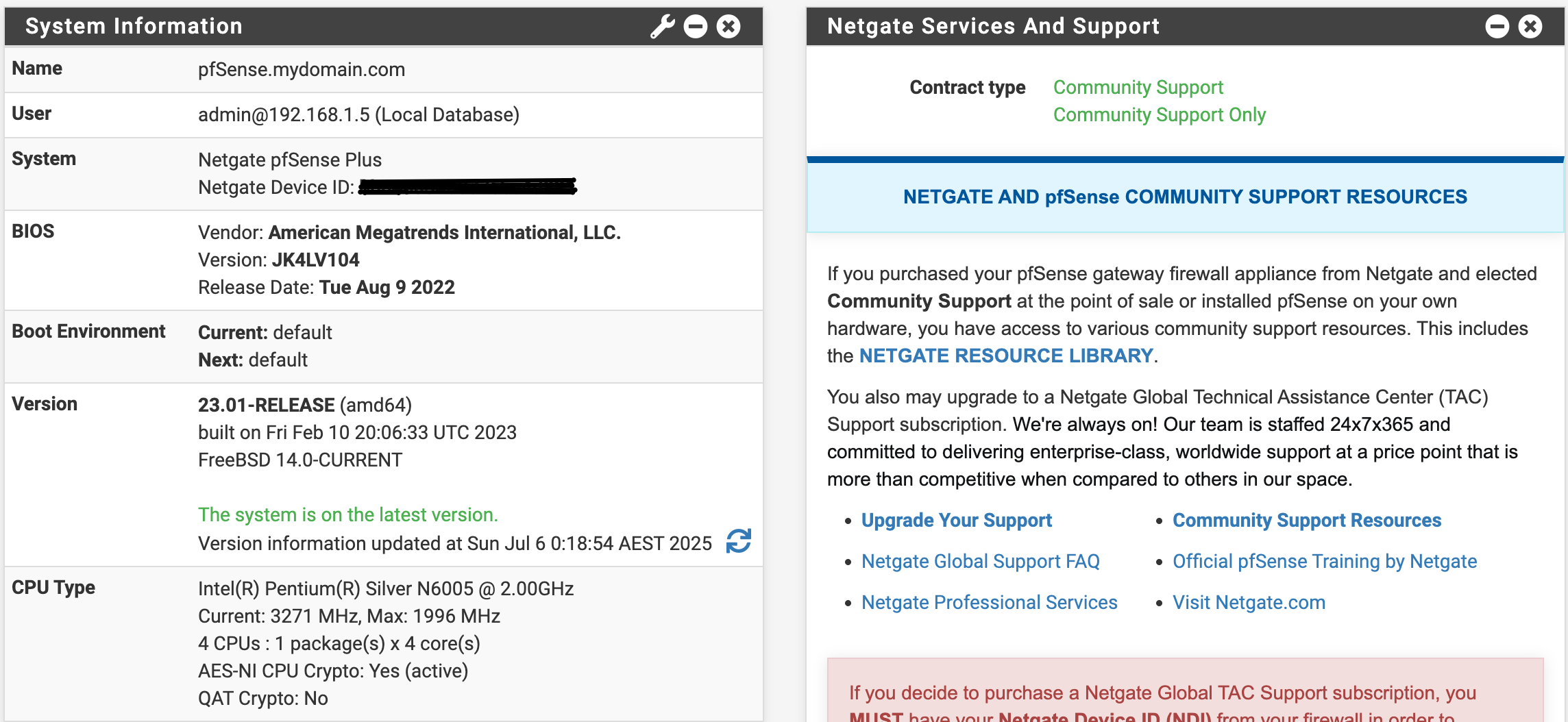...well, after some false starts (like loading 2.7.2 and running into different interface names on the new hardware (i,e. igc0 vs igb0, etc..) which did not allow th eloading of my VLANS etc... I ended up editing the backup config file, replacing "igb" for "igc", and loading 2.8.0... all is working great now on the new hardware.... I will wait until I can upgrade from 2.8.0 to Plus... reason to go to Plus is to contribute $ to the project, as I have been using pfSense for free for years now... am recently retired and delving into IT and learning as I go... Thanks for all the replies and suggestions !