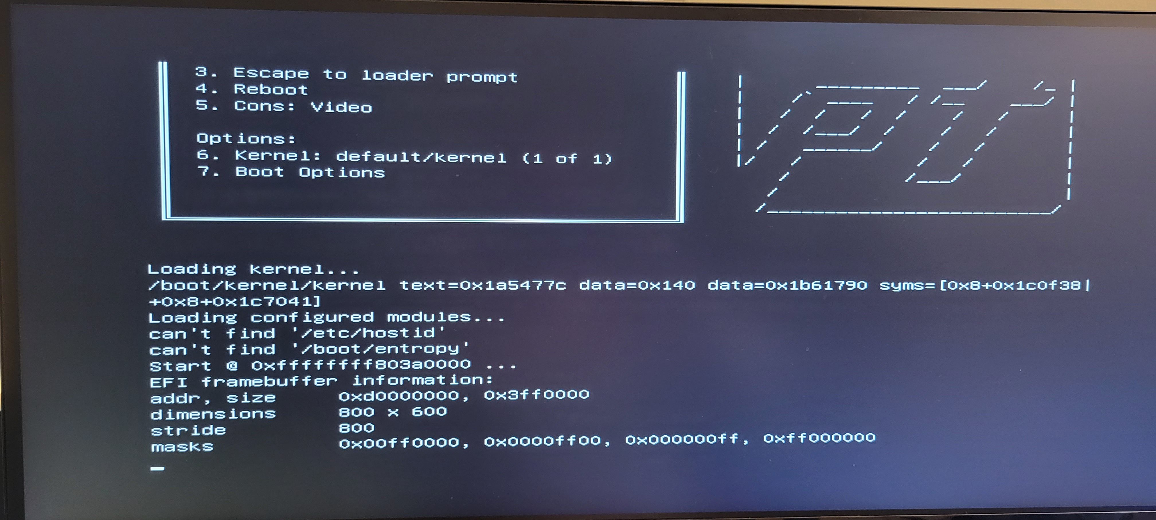 (shows "Cons: Serial" by default) as well as attempting to boot in Single user mode. I have also used the Boot Options menu to set Safe Mode: On and Verbose: On, but I see the same result.[image: 1644105617095-20220205_184224-resized.jpg]