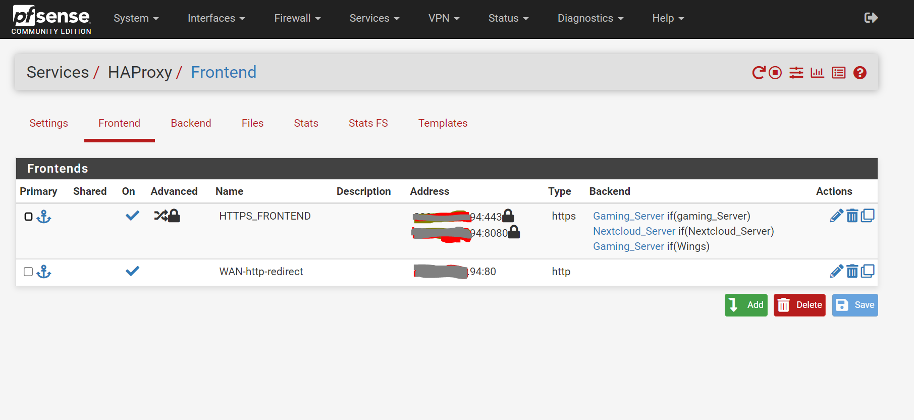 @deeztek Sorry for the delay, it took a little longer to get time to sit and screen shot these. I didn't snap an image, but the SSL_Offload_FrontEnd and piWeb-80 backends have the "Use Client-IP to connect to backend servers." option selected in the advanced section. Let me know if you need any other sections or anything else. Hope this helps! I also set up the OpenVPN to port share with my SSH server, so I have my WAN router doing the SSL offloading, passing decrypted traffic to my web server, the OpenVPN sharing the same 443 port, and SSH getting passed from the router to the OpenVPN server and then off to the SSH server also on port 443. Works great and haven't had any issues serving the multiple domains from my web server.