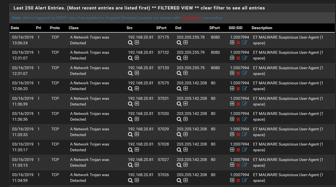 bmeeks, I agree that writing some new rules for purposefully sneaky VPN clients would be useful to the community at large, especially for administrators struggling with middle schoolers and educational subnets. I'm starting by reading up on forum posts of detecting OpenVPN using Snort (including posts on this forum). It doesn't look very promising because OpenVPN can wrap itself in HTTPS or other legitimate protocols.