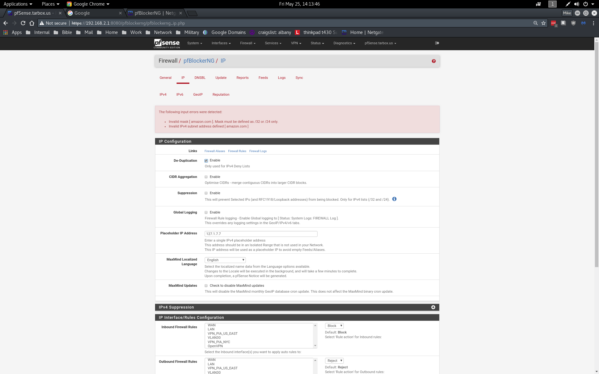 Thanks. It ended up being the "pfB_Top_v6 auto rule" on my LAN1. I disabled it and now can access the website. Now, to figure out what the rule did and what I did by disabling it. :o