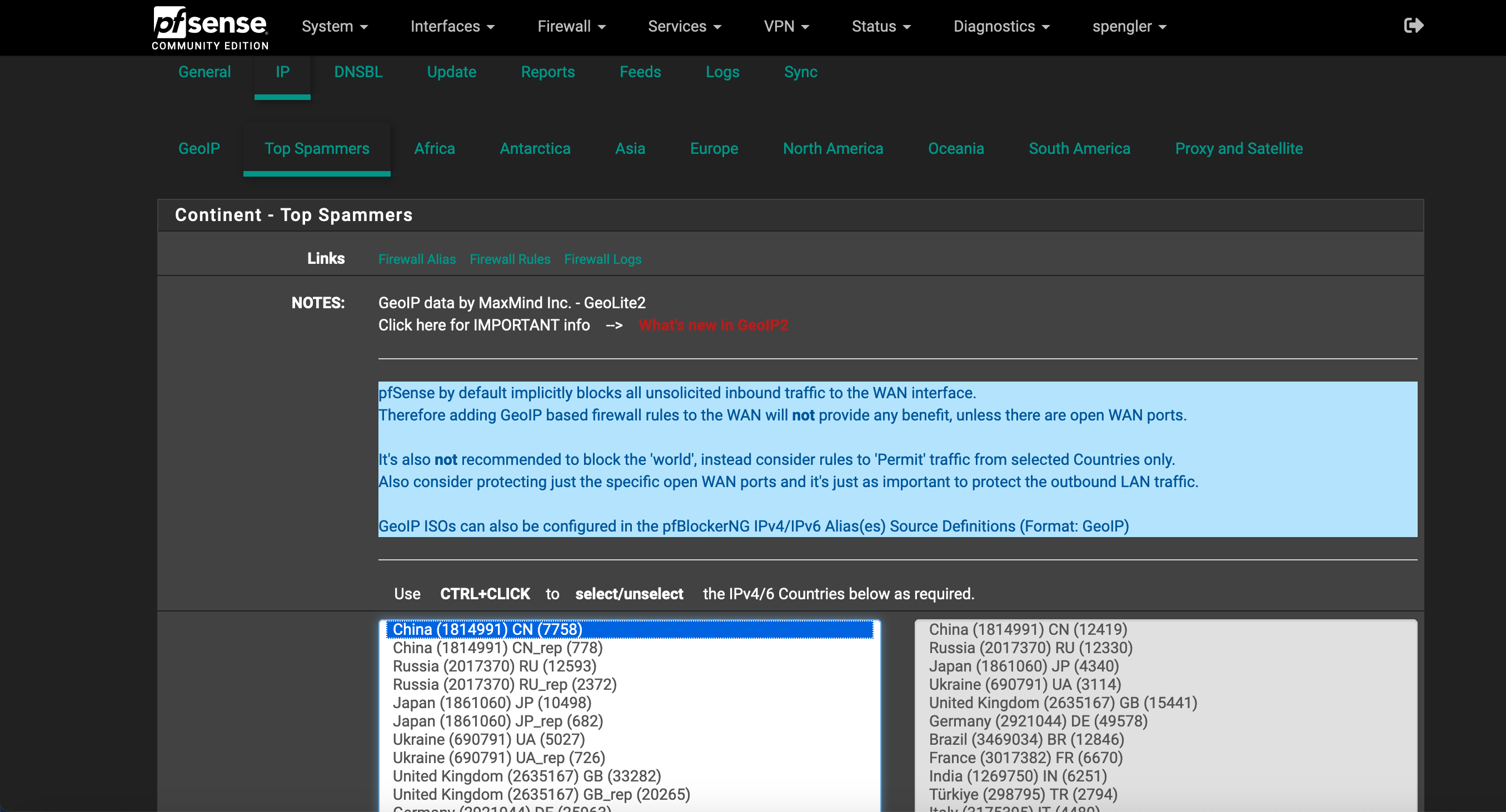 Selecting 'original format', sets pfBlockerNG rules at the top of the Firewall TAB.