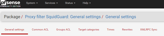 Ora se apro il menu di servizio e seleziono "Filtro proxy SquidGuard" dovrebbe presentare il seguente menu: