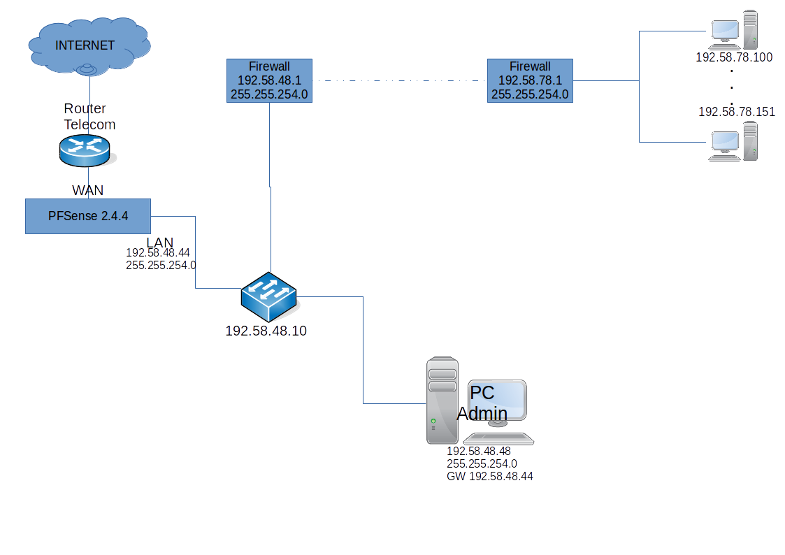 192.168.1.1 è il default gateway del pfSense, ma non mi è chiaro a quale macchina faccia riferimento, come sono collegati i due siti?