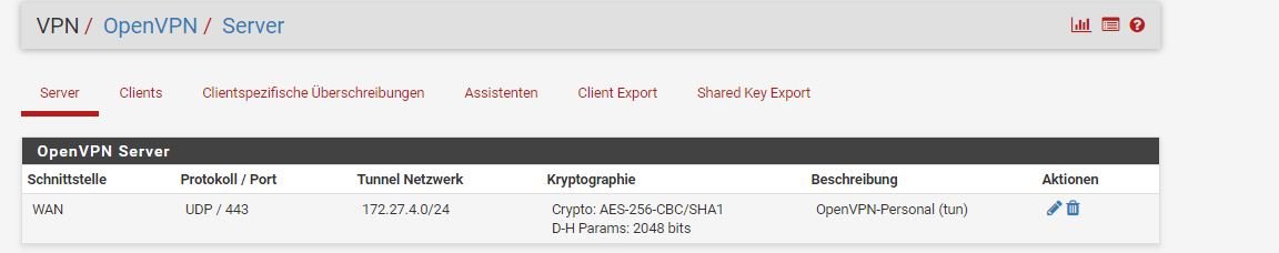 Das Mysteriöse ist, auch wenn ich einen neuen OpenVpn Server über den Assistenten erstelle mit neuem CA und SA, klappt es nicht.