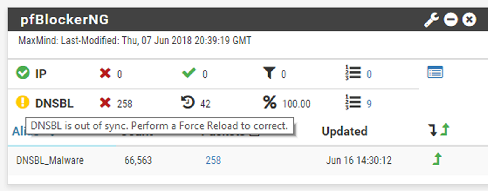Run a "Force Reload - DNSBL" and check the pfblockerng.log for more details.