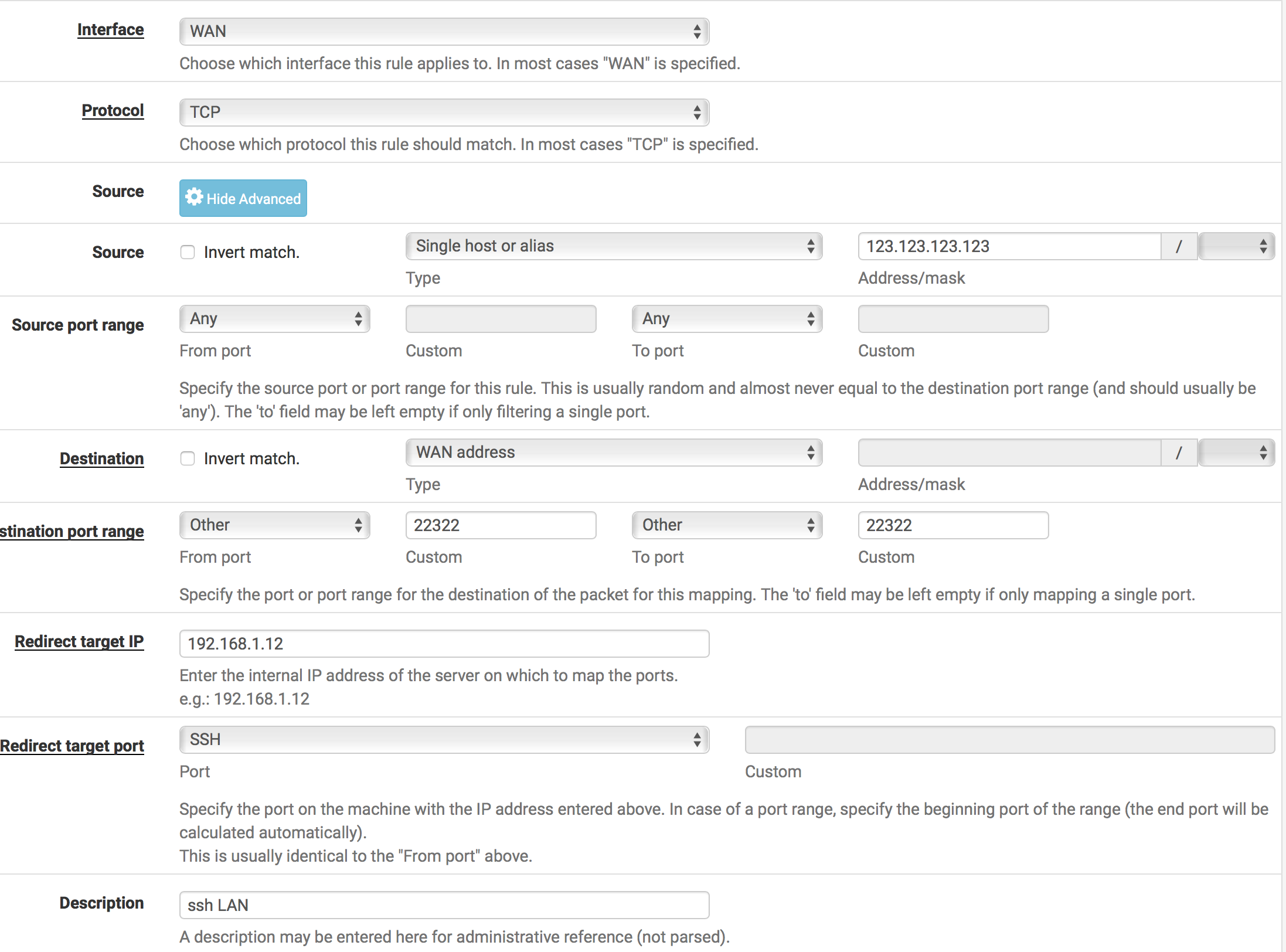 I've created a NAT port forwarding rule with an allowed source IP range.