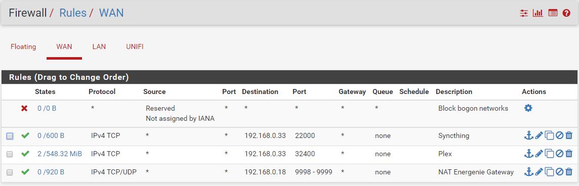 No matter what I do, I cannot open 22000,9998 & 9999 I have tried several port checkers that always tell me the port I check is closed, I also have 32400 open for Plex, although this one works I get notifications once a day from Plex telling me that the remote connection is down and sure enough if I check with an online port checker port 32400 is closed, it always comes back on it's own (could be anything up to 20 minutes) and again I check with an online port checker and it is open again. Am I missing something? I have followed the guide but cannot open the other 3 ports mentioned at all!