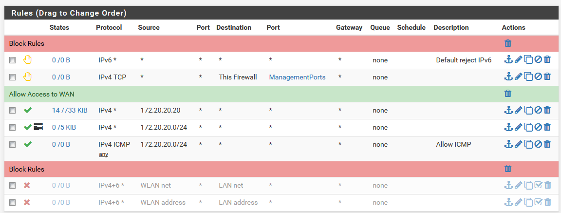 Manual outbound NAT? Did you add the rules for the 172.20.20.0/24 source network?