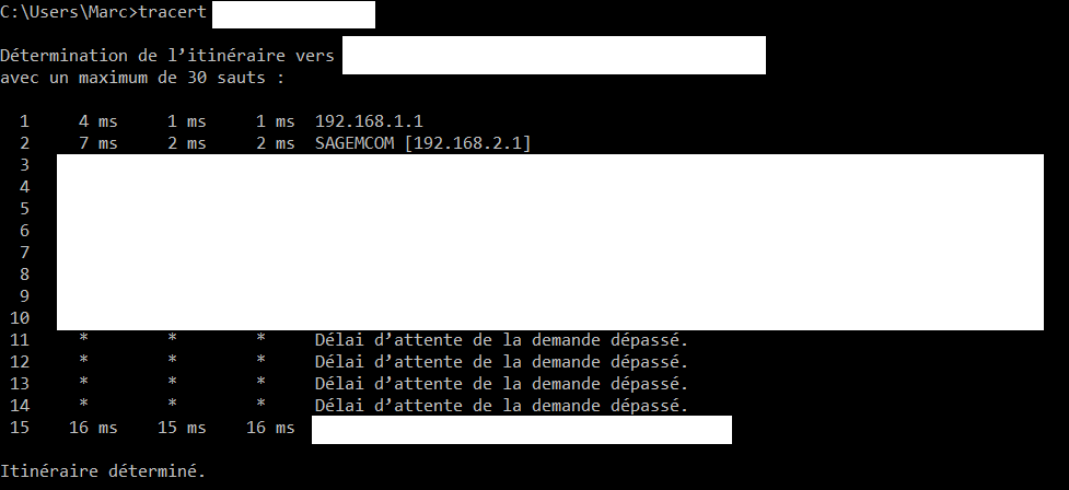 I connect my computer to the VPN tunnel and I make a traceroute on 8.8.8.8: