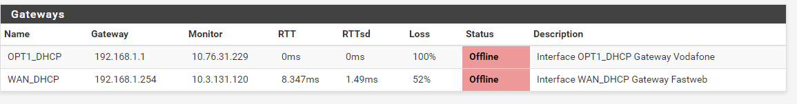 Identifico con il ping l'ip target, provo a pingarlo da finestra dos (ed il ping risponde con esito positivo), configuro le rules per forzare l'uscita sul gateway da monitorare, etc ma alla fine lo stato del gateway è sempre su OFFLINE.