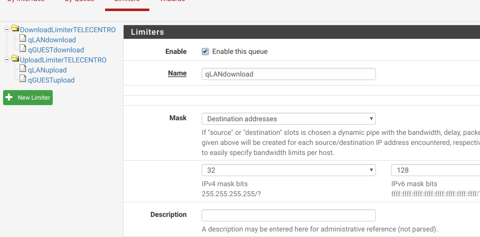 I have upgraded to 2.4.4, and limiters dissapeared. I recreated them, but there was no incoming traffic at all. Upload traffic seemed ok. So, i reverted to 2.4.3 (it's a VM), but then i realized that in 2.4.3 i cannot edit the limiters, or the shaper, or bad things happen. Just by modifying the bandwidth on the limiters resulted in very low incoming bandwidth (something like 700 kbps instead of 3.5 mbps). So, i decided to delete all limiters and re-create them, and i got the same problem than with the upgrade to 2.4.4: no incoming traffic. Removing the traffic shaper (CBQ) also resulted on the same problem. Fortunately, i just reverted to a previous snapshot, and restored normal functionality. But it seems like i cannot modify anything at all on the shapers/limiters, or bad things happen. Not good.