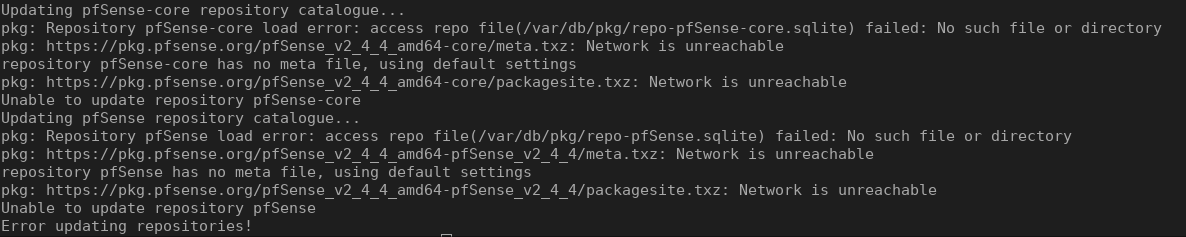 Olá, tenho um problema no meu pfsense, ele não estar mais atualizando, nem instalando os pacotes.