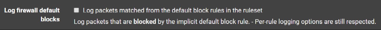 OP: In pfSense 2.4.4-RELEASE (amd64), I've gone to Status > System Logs > Settings and turned off the "Log firewall default blocks" option: