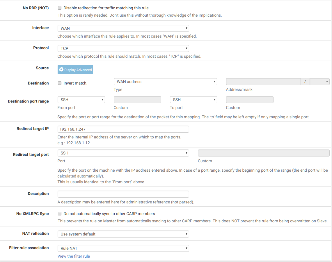 11:10:49.996418 IP meu_ip_wan.24834 > 192.168.1.247.22: Flags [S], seq 3545936235, win 29200, options [mss 1460,sackOK,TS val 2985168310 ecr 0,nop,wscale 7], length 0