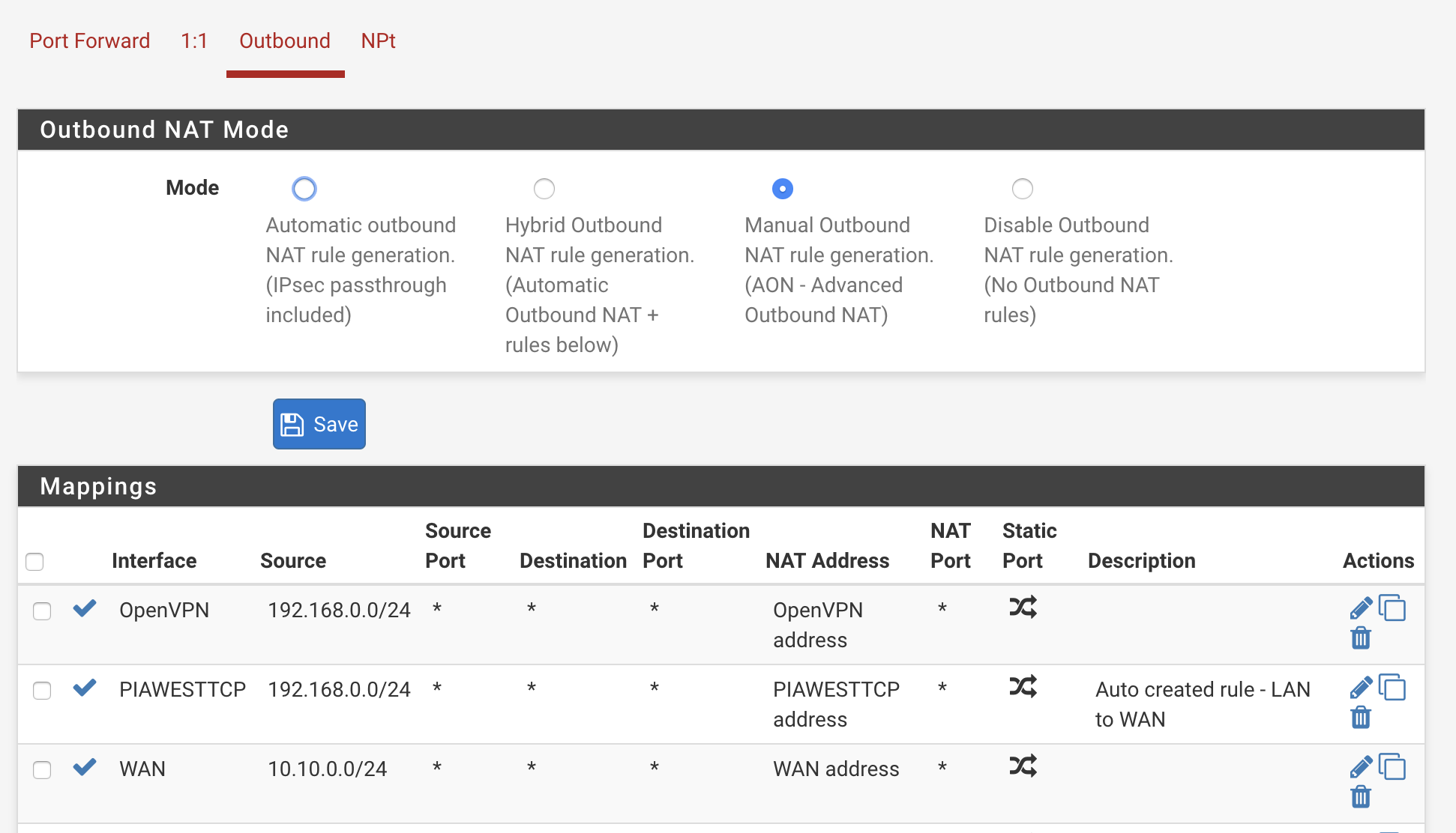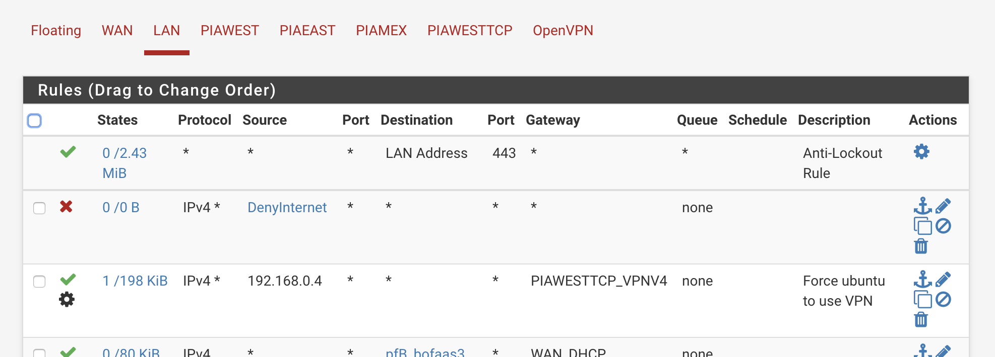 - Has an openVPN client connected to PIA (TCP)