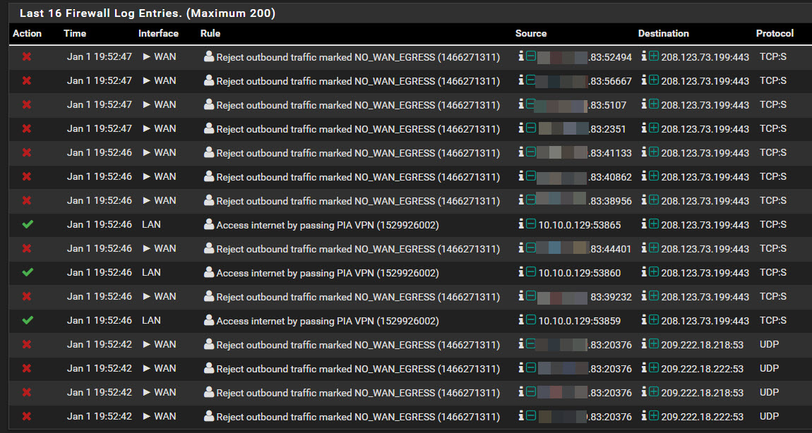 The kill switch i have setup uses the NO_WAN_EGRESS technique which blocks out traffic for the PIA clients if the PIA VPN looses connection. This works perfectly.