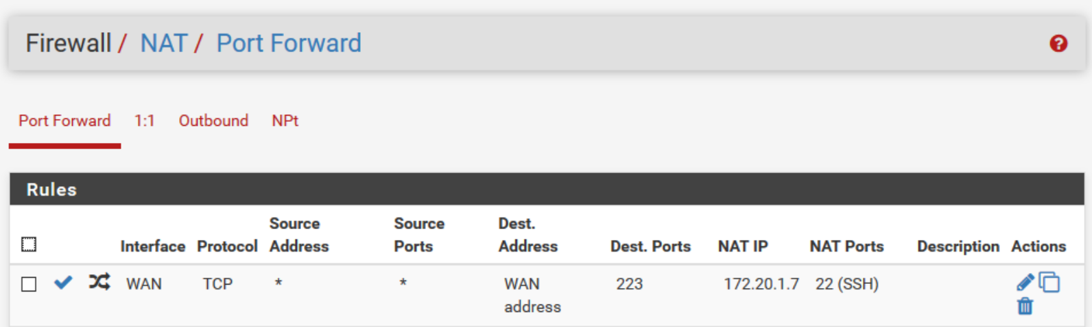 I try to config a internet access to some linux servers. My idea is from internet to port 223 forward to internal port 22.