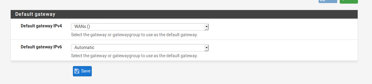 Hello everyone! I've noticed a few weird things regarding the IP routing table. First of all I have two Internet connections, let's call them W1 and W2. and I have created a gateway group, which is named WANs. WANs group contains W1 as Tier1, and W2 as Tier2. What I've noticed is that the default route gets lost after performing a reboot. And pfsense keeps that way until I choose W1 as the default one. Also it happened twice this month that the default route gets "suddenly" removed from the IP routing table. Kindly remember that these things happened to me while "WANs", which is a gateway group containing two interfaces as WAN, is being set as "default gateway" using the recent feature "default gateway IPv4" introduced with 2.4.4 version. Kindly check the picture below