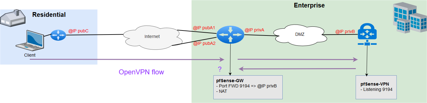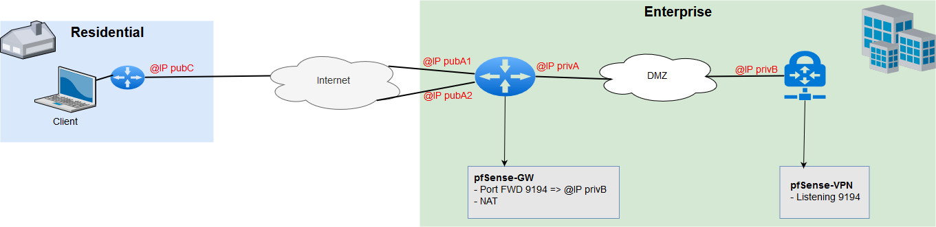 I have to set up a VPN, which is a pfSense with OpenVPN listening on a non standard UDP port (9194).