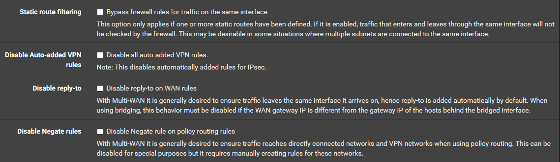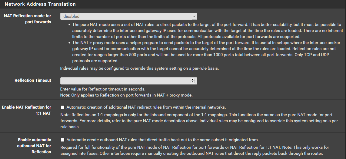 - In System / Advanced / Firewall & NAT :