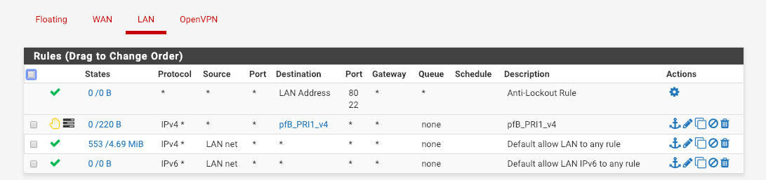 I believe that all those rules were auto generated when I was setting up pfSense.