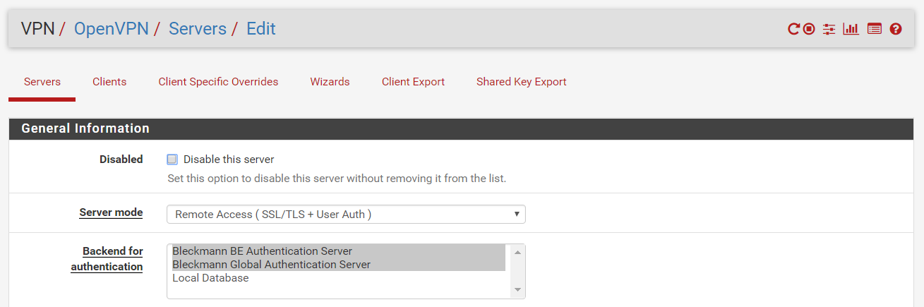 At the moment we are migrating to a new domain, so we have a Radius Server in both domains.Both servers are selected in the OpenVPN server configuration: