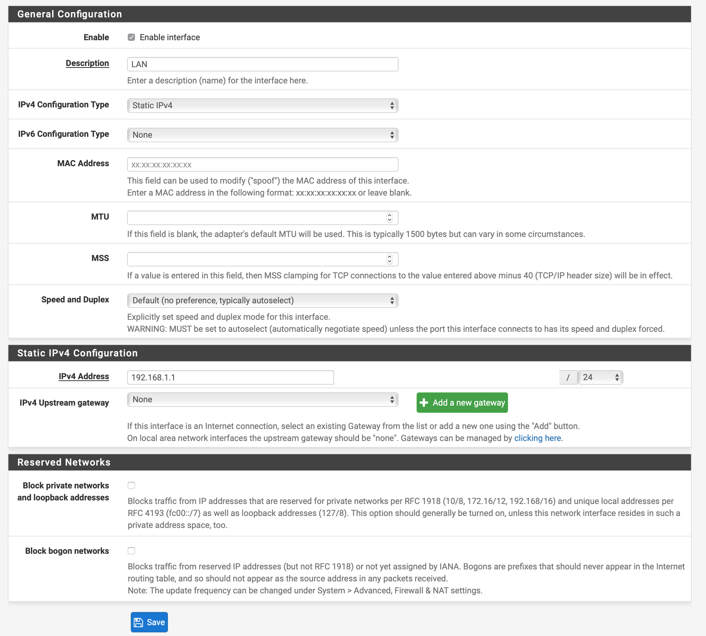 Address Family: IPv4+IPV6 (or IPv4 if you've turned off IPv6)