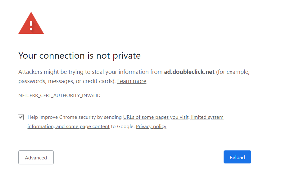 issue with ad.doubleclick.net / NET::ERR_CERT_AUTHORITY_INVALID