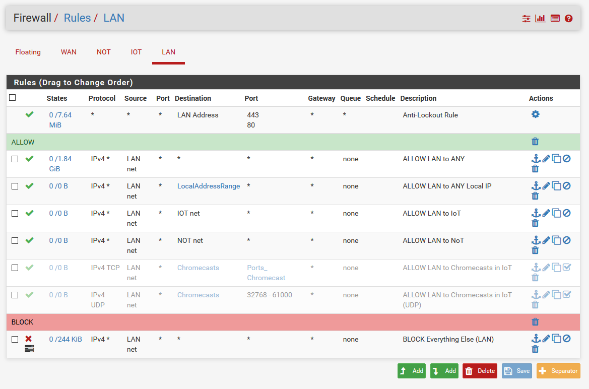 edit: Also why would you be blocking bogon on a lan side interface? How would there ever be bogon on your own network?