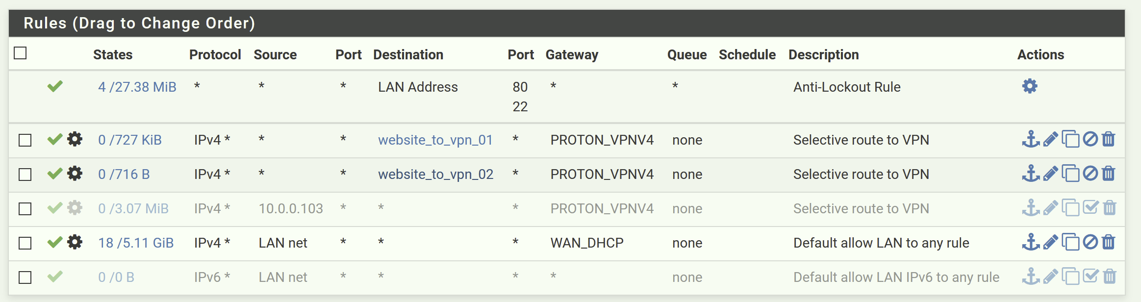 I will also note that the policy routing for imgur is unlikely to work well as those fqdns are almost certainly resolvable to numerous IPs but the alias will only resolve them once when the ruleset is updated. Same as this: