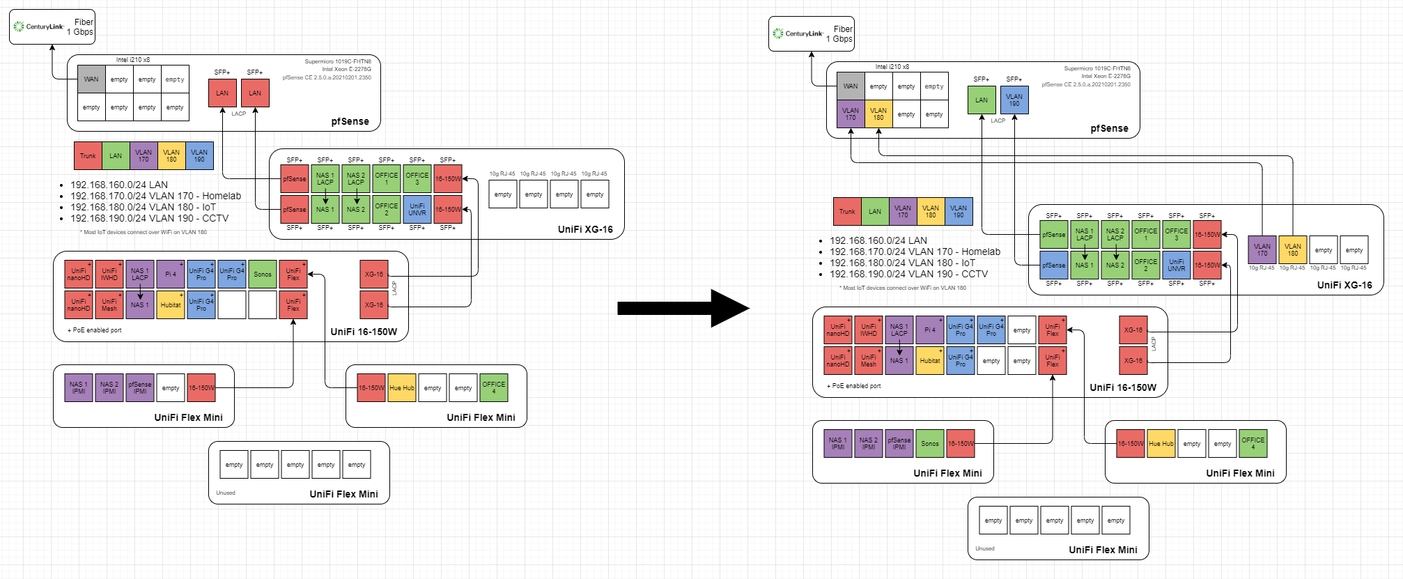 Also considering getting rid of the "Homelab" VLAN and getting rid of all the LACP connections, as its overkill 1000x in Homelab.. and making a more simple layout.. Basically all my trusted devices and homelab just on the native VLAN essentially.