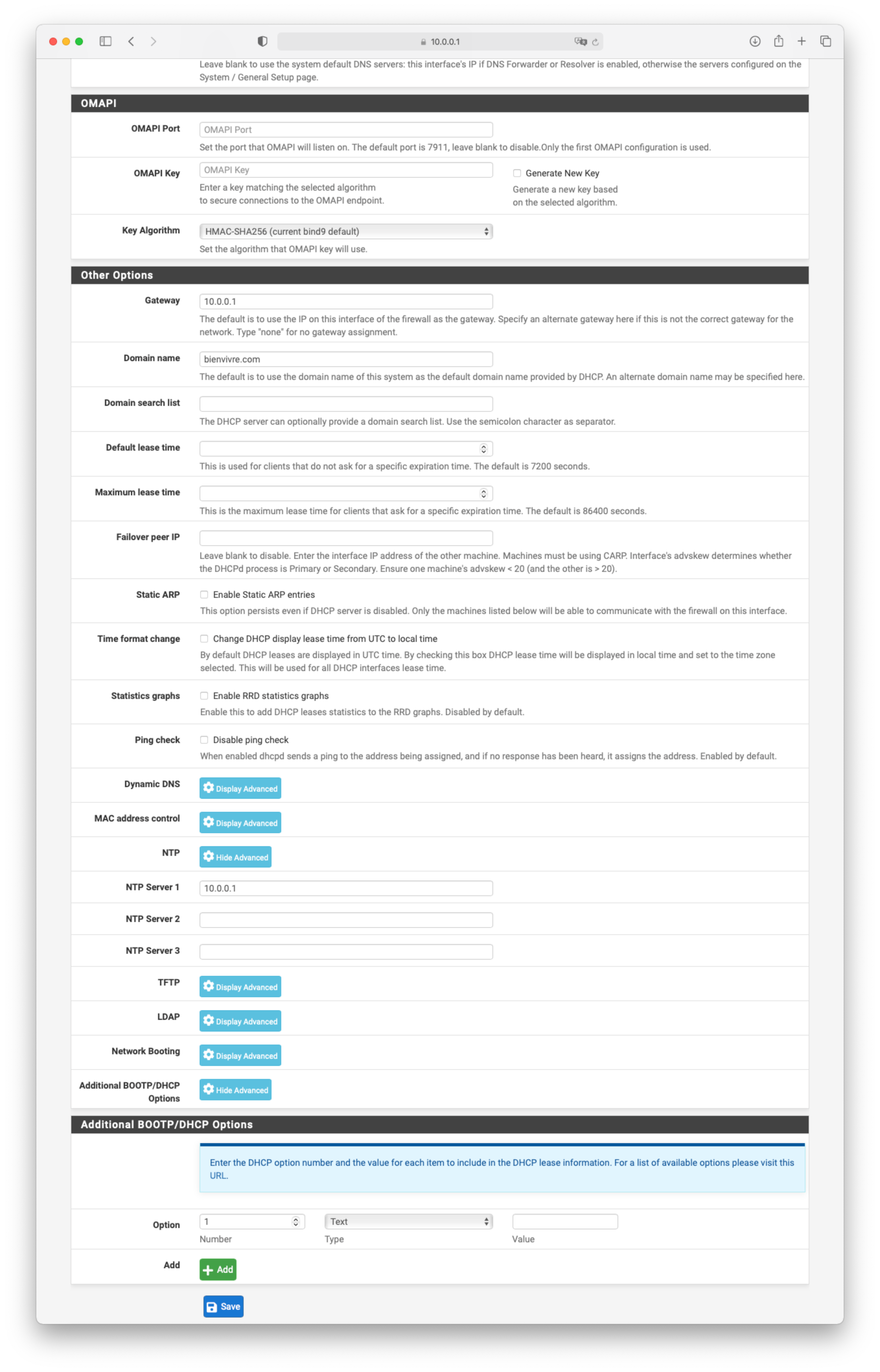 Do your self a favour , and don't use 10.0.0.1/16 as your lan ip.