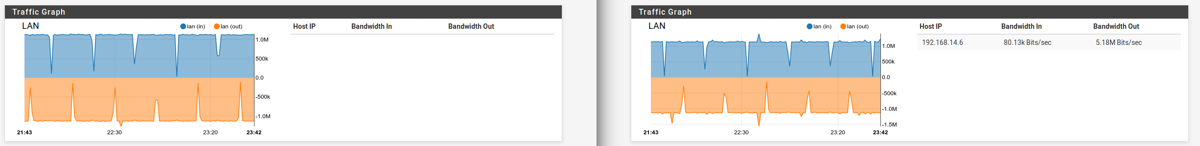 I'm simulating a symmetric 1mbit/s dummy load between sites with iperf3. The traffic graph itself appears to be correct, but the numbers to the right are sporadic and incorrect. Sometimes they don't show, and when they do show they are either very low or very high. They usually show either nothing or any number between 20kbit/s and 6mbit/s during this simulation.