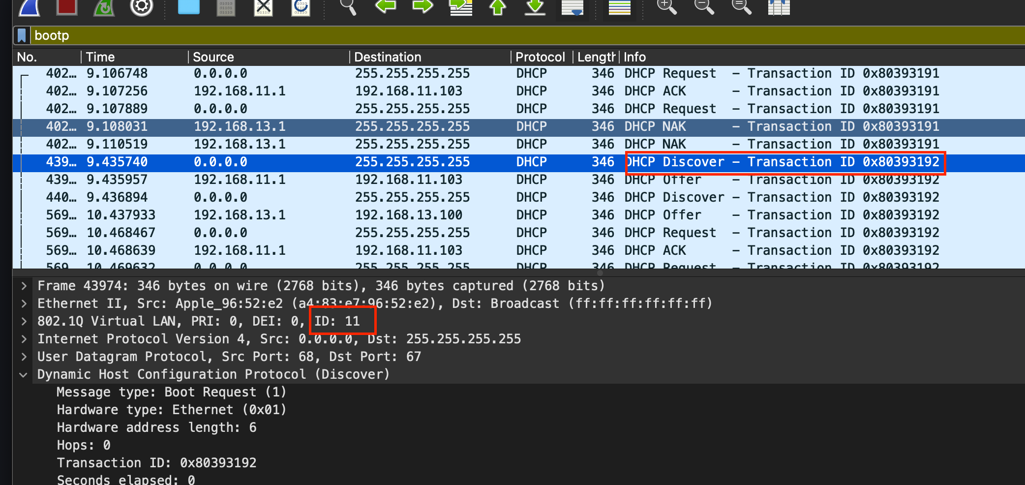 I've just taken a short pcap on LAN port on pfSense. 192.168.11.103 is still my MacBook and I renewed the DHCP lease twice during the pcap pcap7.pcap