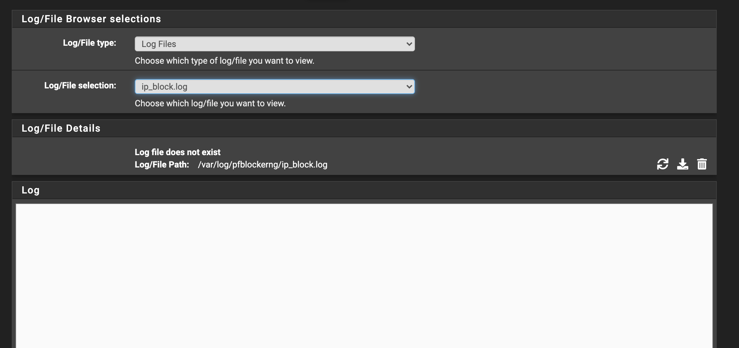 And when I check the ip_block logfile, it is also empty and it says that the logfile does not exist: