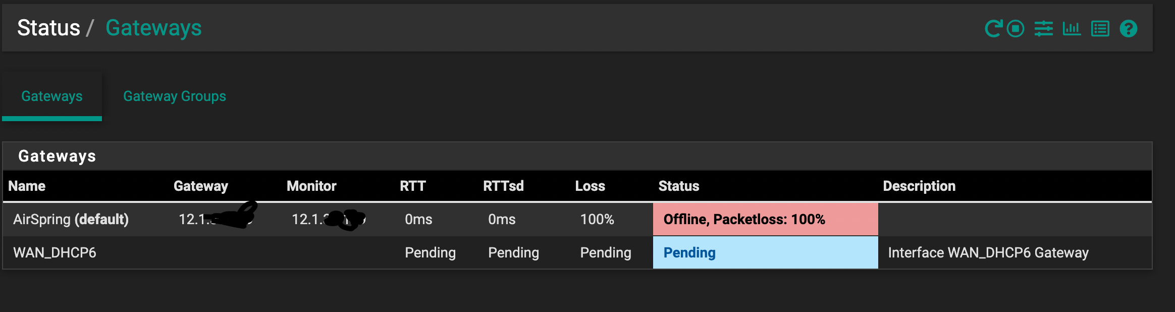 Gateway showing that is it offline but i still have internet. i wonder why. the lastest thing i did do tho was remove the dns servers from general setup. Screen Shot 2021-10-13 at 12.55.30 PM.png Screen Shot 2021-10-13 at 12.53.16 PM.png