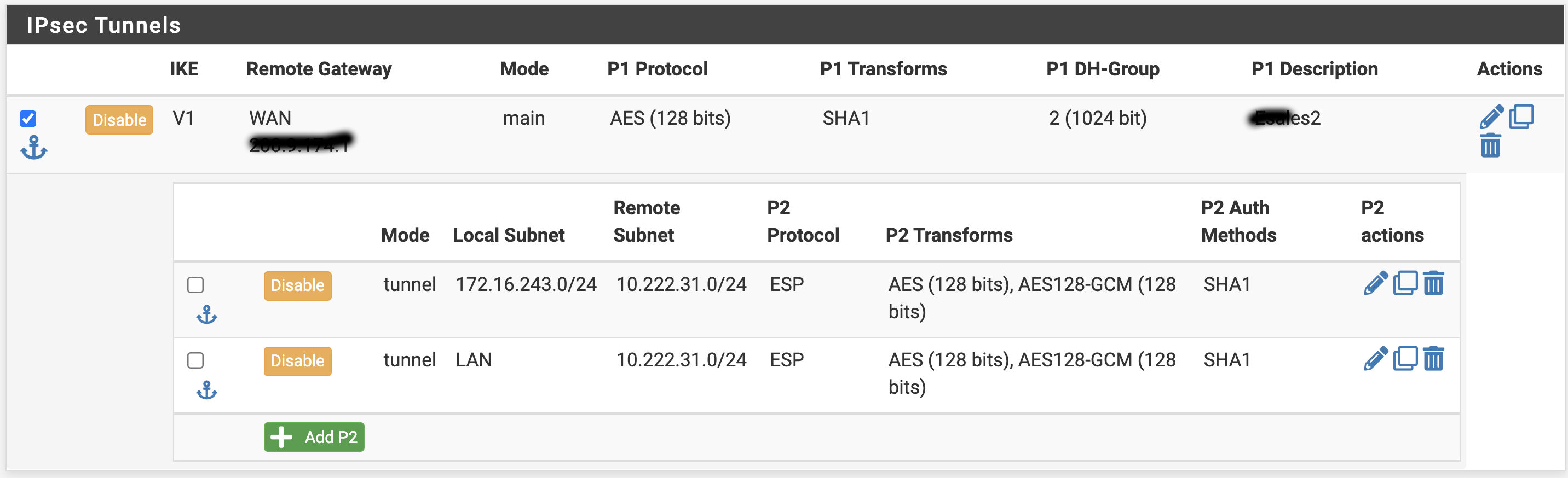 I tried to make big differences in the phase 2 entrys but they always get replicated. Iam trying to establish an Site 2 Site with an Sophos UTM latest Firmware. With 2.6.0 and above there is no problem, with 2.5.2 i have no luck in doing so...