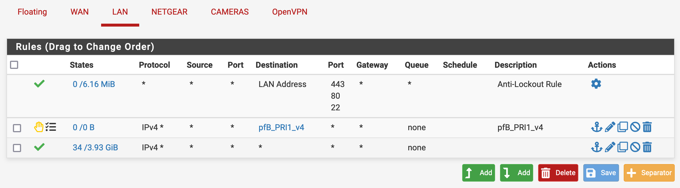 I realize that there isn't a current rule on the NETGEAR network that shows my attempts because I deleted them in frustration. Here is something that I've tried and it doesn't matter whether I try and allow the entire LAN in or a single host, it gets blocked.