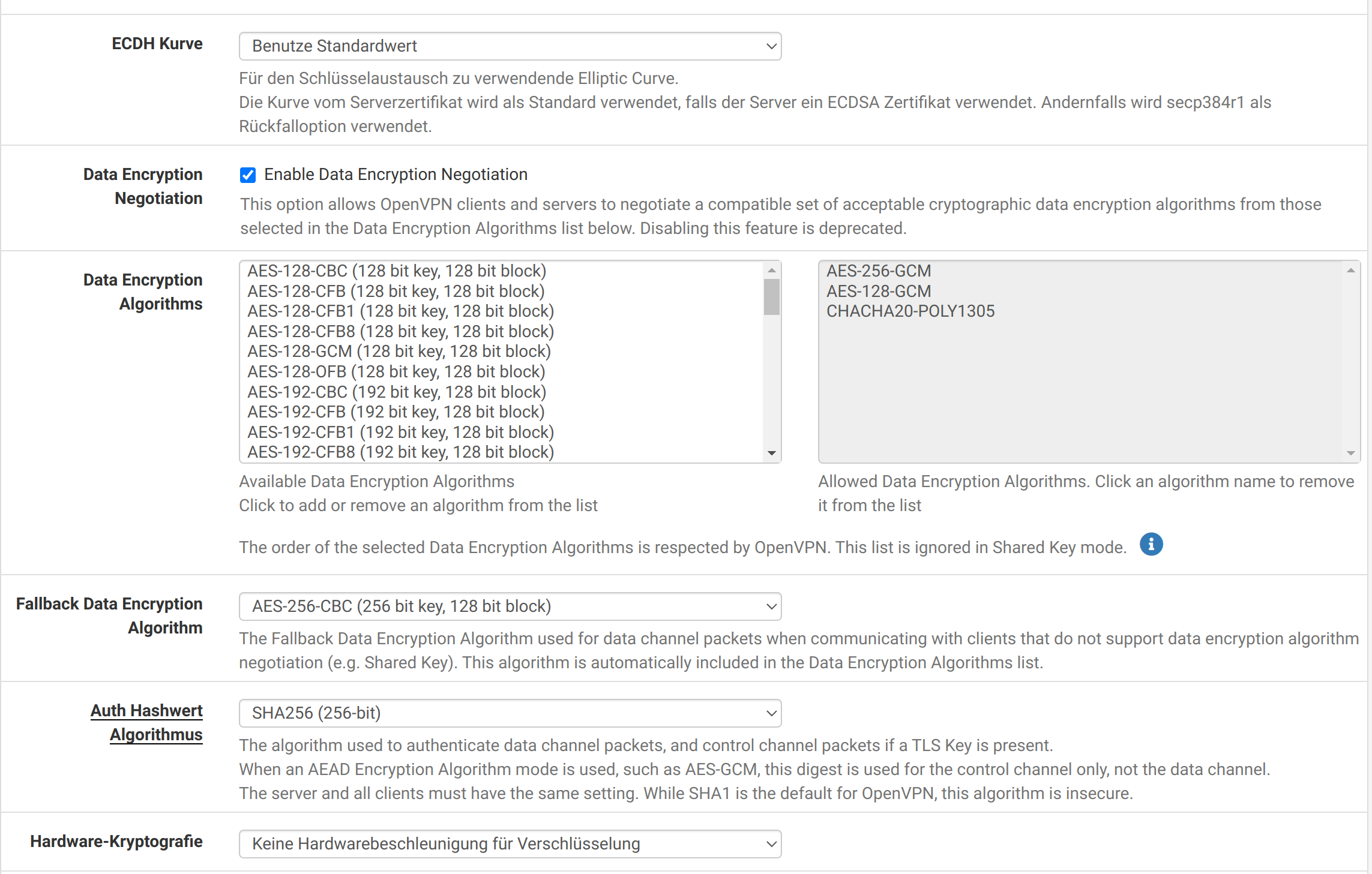 Installed and imported the ovpn file. The connection also works. I can reach all hosts behind the gateway. A warning appears every time I connect: