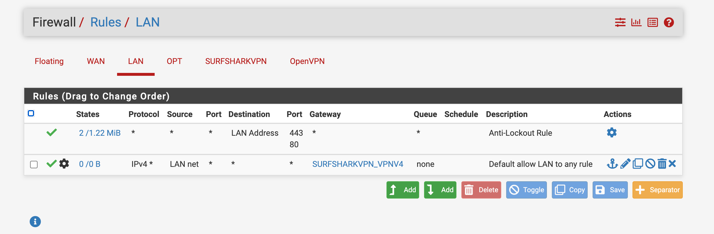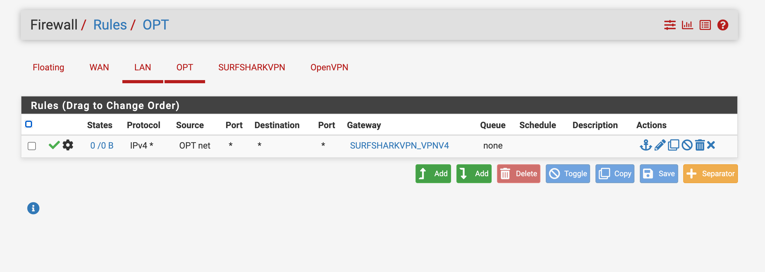 https://support.surfshark.com/hc/en-us/articles/360010789259-How-to-set-up-pfSense-2-4-4-with-SurfsharkWhat makes my PC unable to connect through the internet on it's own VLAN? The OPT1 port does not get a correct lease but the LAN port functions perfectly without problems.