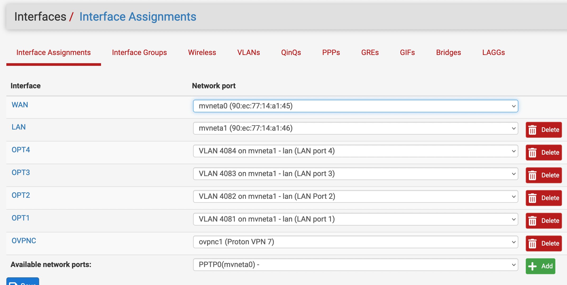 Created the VLAN interface. I have a Netgate 2100, so the only actual switches are mvneta0 (for WAN) and mvneta1 (for everything else. 32e96186-eb2e-4c8e-be87-ce112c811f2b-image.png
